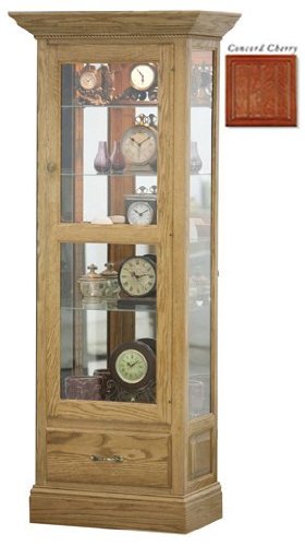 Coastal 49315PLCC Tall, Single Door and Drawer Curio - Concord Cherry?Distinctive between production and pride, the Heirloom Collection was crafted with attention to detail with the best solid woods and veneers in order to proudly showcase memories amd collectables for decades. Color: Concord Cherry. Lighted. 1 Glass Panel Door. 5 Adjustable Shelves. 1 Drawer. Mirror Back. Mirror Bottom. Finishes Top. Plain Base. Dimensions: 76-3/4" H x 30-1/2" W x 18-1/2" D.