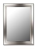 Petite Mirror with Stainless Liner in Stainless Size: 31" H x 67" W257308 Size: 31" H x 67" W Features: -All sizes have 1'' beveled glass, except 61'' x 25''.-Can be hung vertically or horizontally.-61'' Mirror has vertical hanging orientation.-Made in USA.-Note: The following sizes ship via truck freight: 55'' x 43'', 67'' x 31''. Color/Finish: -Finished in stainless with stainless liner. Dimensions: -Molding width: 3.5''.-38'' W x 28'' H.-61'' W x 25'' H.-43'' W x 31'' H.-47'' W x 37'' H.-55'' W x 43'' H.-67'' W x 31'' H. Warranty: -Manufacturer provides 30 days warranty against manufacturing defects.