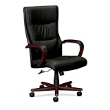 | ✚✚✚ Basyx Executive High-Back Lthr Chair, 27"X35"X45-1/2", Mahogany Basyx Executive High-Back Lthr Chair, 27"x35"x45-1/2", MahoganyExecutive high-back chair features a tailored padded back for strong lumbar support, leather upholstery, and padded wood arms to protect against nicks and scratches. Wood arms and base caps are coated with protective polyurethane. Functions include pneumatic seat-height adjustment from 18-1/4" to 22", 360-degree swivel, tilt, tilt tension, and tilt lock. Seat dimensions are 20" wide x 18-1/2" deep. Usable seat depth is 19". Distance between arms is 20-1/2". Back measures 20" wide x 26-1/2" high. Chair meets or exceeds ANSI/BIFMA standards.