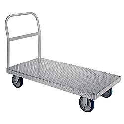 FeaturesPlat.Truck-8"Mr.WheelsAluminum deck with treadplate surfaceSupportive girders underneath are bolted to the deckRemovable crossbar handle can be placed in pipe pockets located on each end of platformSHOWN IN PHOTO: Aluminum platform truck with mold-on rubber casters and optional corner bumpers WESCO Lightweight Aluminum Platform Trucks?