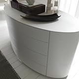 | ✚✚✚ Moon Dresser Think of the Moon Dresser as a well-rounded character. In a captivating oval shape, this wood dresser brings all the simple sophistication of Italian craftsmanship right to your bedroom. The white lacquer brightens any design palette, while the open pores in the wood make the grain visible for a textured effect. You won't see any pulls or knobs on the four drawers, just perfectly streamlined style. Why? The special push-pull mechanisms make opening and closing easy. Made in Italy. About Rossetto USA Rossetto USA is the U.S. division of the Arros Group, a leading manufacturer that exports Italian furniture style and design all over the world. Operating out of its warehouse in High Point, N.C., since 1999, Rossetto provides complete contemporary and modern dining, bedroom, and occasional furniture programs that combine affordable price with innovative Italian design to satisfy the demands of their distinguished customers. Modern dresser with captivating oval shape. Wood construction, finely crafted in Italy. Open-pore, white lacquer finish. 4 drawers with push-pull openings. Dimensions: 52W x 26D x 30H inches.