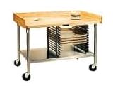 | ✚✚✚ John Boos Stainless Steel Bakery Prep Table - 30in. W x 60in. L Bakery Prep Table 30"W x 60"L 1-3/4" laminated Hard Rock maple top w/4" coved backsplash on back & both ends Stainless steel fixed undershelf Bun pan rack holds (8) 18" x 26" pans Legs & gussets 5" heavy duty casters (2 w/locks) KD NSF approved Maple top is finished with Varnique Finish Clear Stainless Steel Base, Undershelf and Bun Pan Rack type 300 stainless steel, with # 3 polish, satin finish Undershelf is secured in a fixed position, 12" above floor Adjustable bullet feet Shipped knocked-down, easy - to - assemble Laminated Hard Rock Maple 18 gauge type 300 stainless steel, # 3 polish, satin finish 18 gauge type 300 stainless steel, # 3 polish, satin finish 1 5/8" Round O.D. 16 gauge type 300 tubular stainless steel # 3 polish, satin finish 5" casters non marking